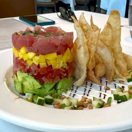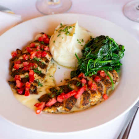 Bricktop's is an upscale establishment serving gourmet New American dishes plated with stylish presentation.