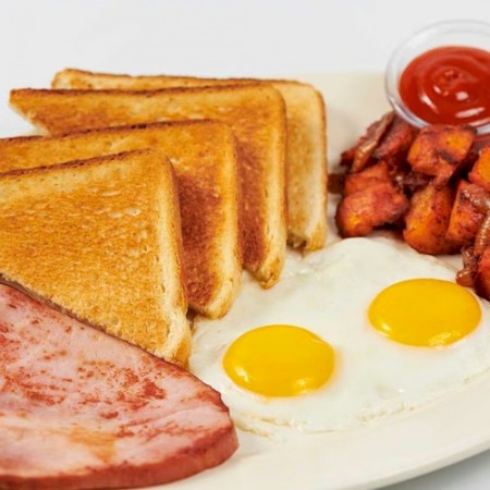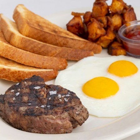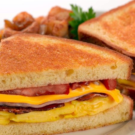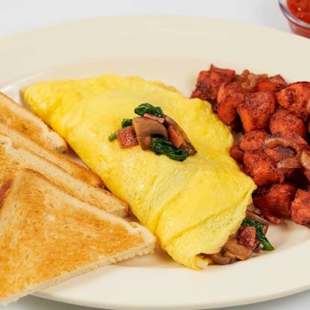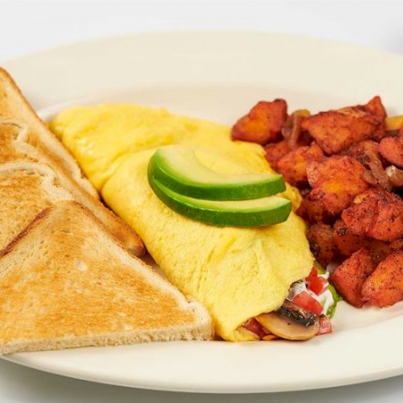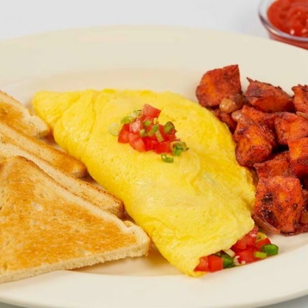 Served all day. Eggs and Omelettes include choice of Breakfast Bread and choice of Breakfast Potatoes or Sliced Tomato.