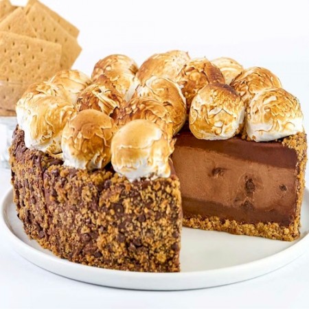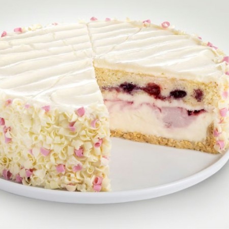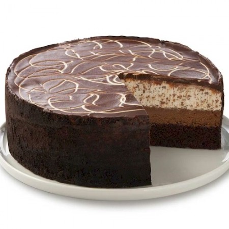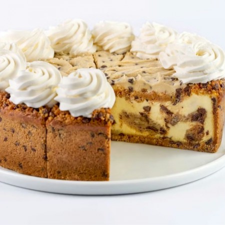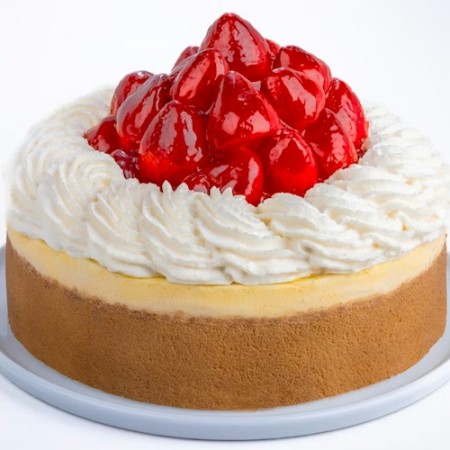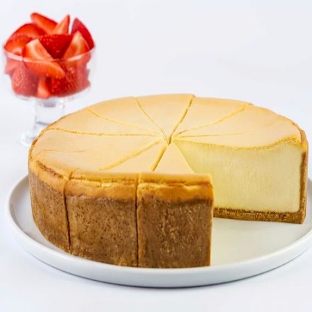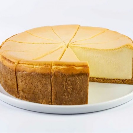 Our whole cheesecakes are served deeply chilled. They travel well and can be stored in your freezer to enjoy later. The 10-inch size serves 12-15 people.