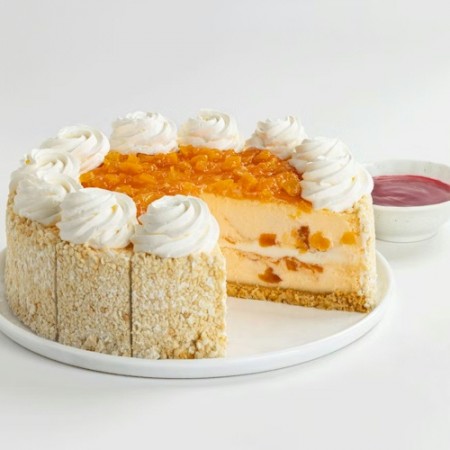 Our whole cheesecakes are served deeply chilled. They travel well and can be stored in your freezer to enjoy later. The 6-inch size serves 4 - 6 people. The 7-Inch size serves 6 - 8 people.