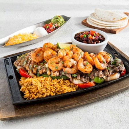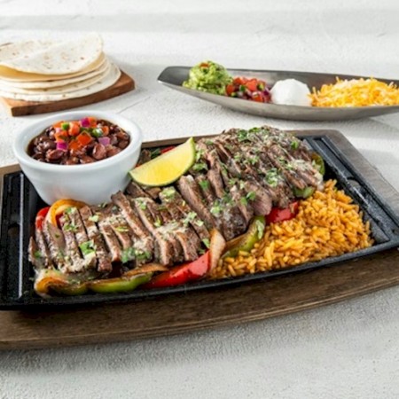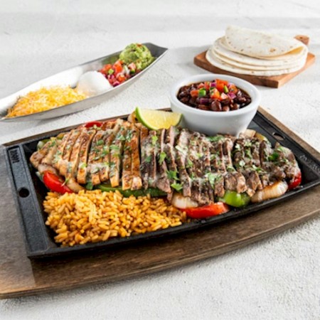 Sizzling with chipotle butter, cilantro, bell peppers & onions. Served with Mexican rice, black beans, guacamole, sour cream, pico, salsa, shredded cheese, flour or all-natural corn tortillas. Jack up your fajitas with white queso and pico for a small additional charge.
