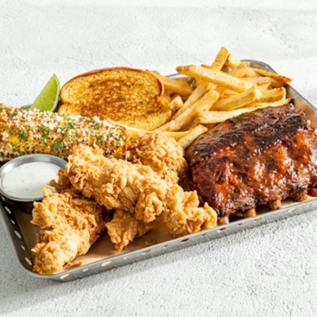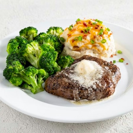 Our Texas-Size Baby Back Ribs are smoked in-house over pecan wood and slow-cooked. Our steaks are hand-trimmed, 100% USDA ribeye & choice sirloin. All grain-fed & optimally aged.