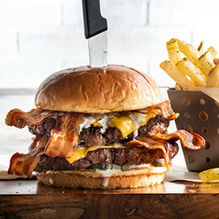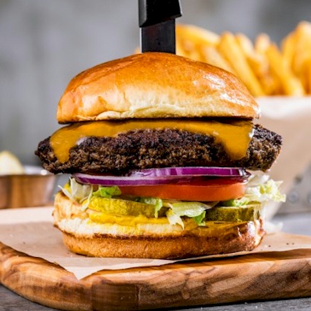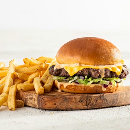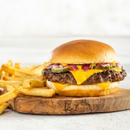 Made with half pound patties. Smashed to lock in flavor on a toasted brioche bun. Served with fries or choice of side.
