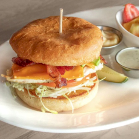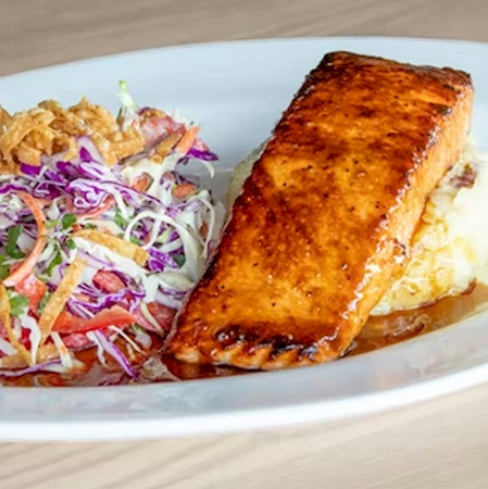 Served with your choice of Seasoned Fries, Fresh Fruit, or Asian Slaw.