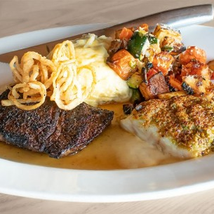Cooper's Hawk offers a large upscale menu featuring interesting fusions in chicken, beef, pork and seafood entrées, as well as flatbreads, burgers, and many gluten-free options.