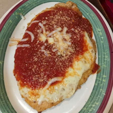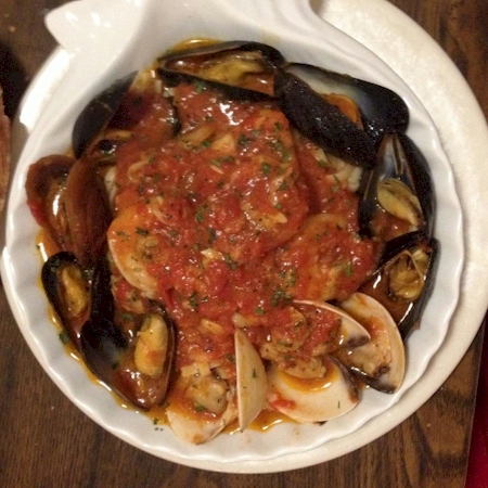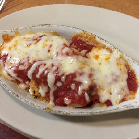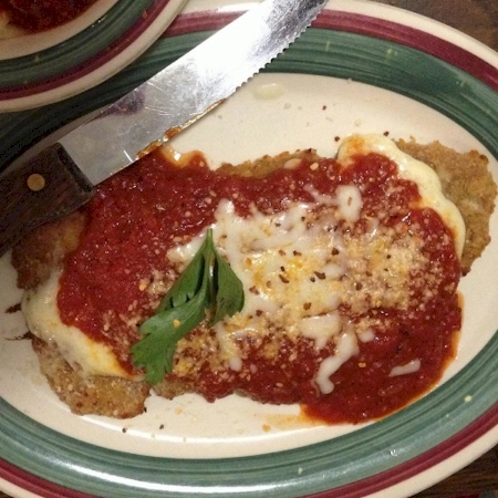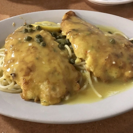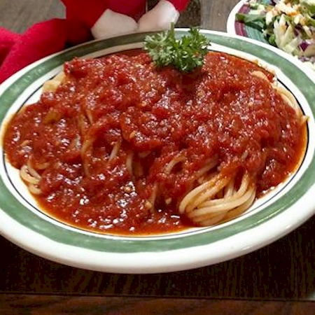 Dinners include choice of house salad, caesar salad or soup; non-pasta dinners include choice of spaghetti, vegetable or potato.
