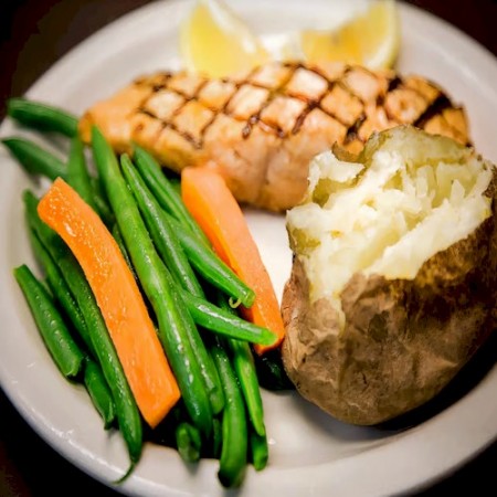 Choice of Rice or Baked Potato. Add Small Salad for an additional charge.