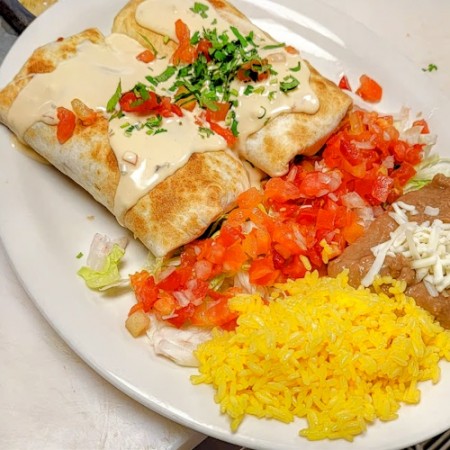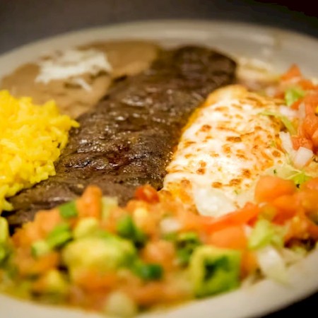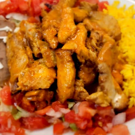 Served with Rice and Refried Beans. Add Small Salad for an additional charge.