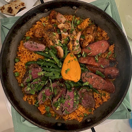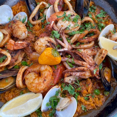 Choose paella for 1 or 2 people. Add lobster or octopus for an additional charge.