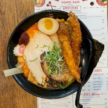 Yoko-San is a casual ramen house with Asian favorites including rich broth-based ramen with a variety of savory ingredients, Japanese rice bowls, appetizers and boba tea.