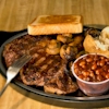 Steak dinners include choice of potato or corn on the cob, side garden or side Caesar salad, and garlic toast.