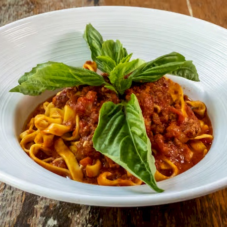 Gluten-free pasta and Bolognese Sauce available for an additional charge.