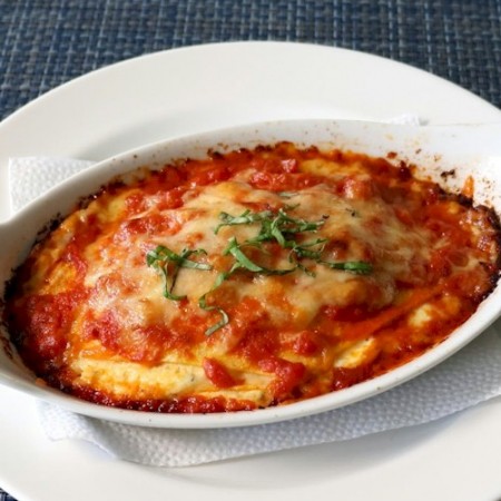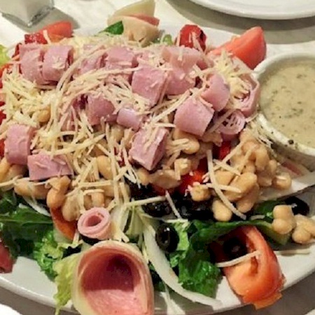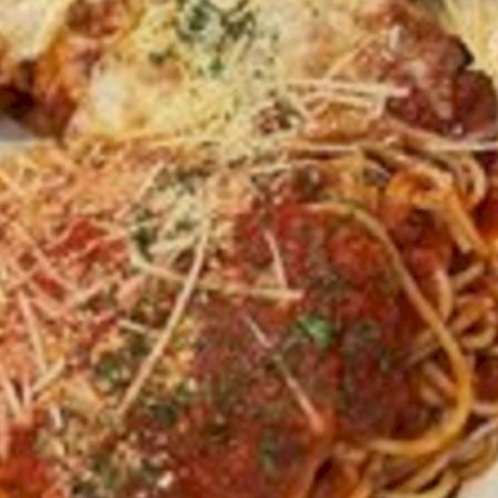 Served with side of pasta (spaghetti, rigatoni, or penne), salad (house or caesar) and bread.
