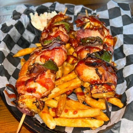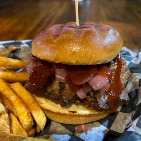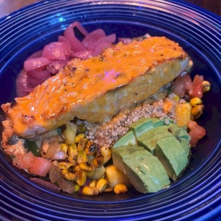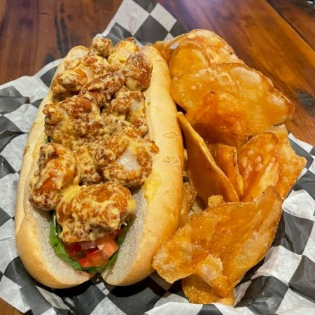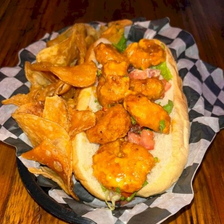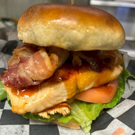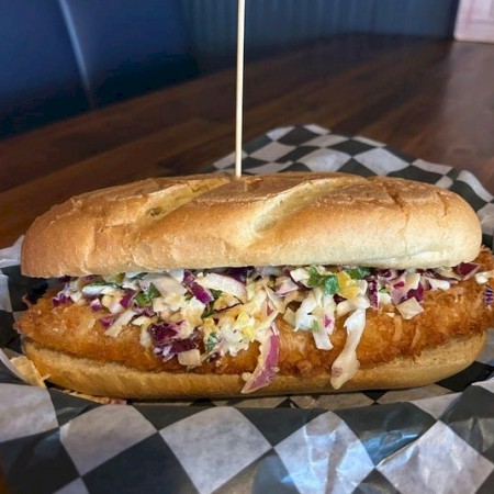 Served with house cooked chips, or sub cole slaw, fries, quinoa, onion rings, or veggies.