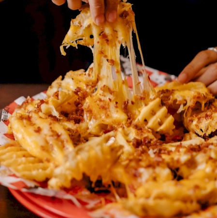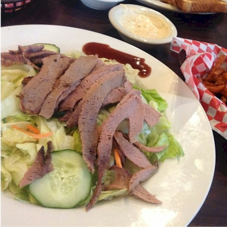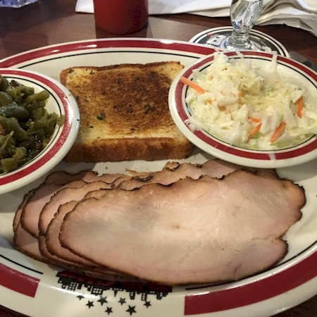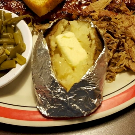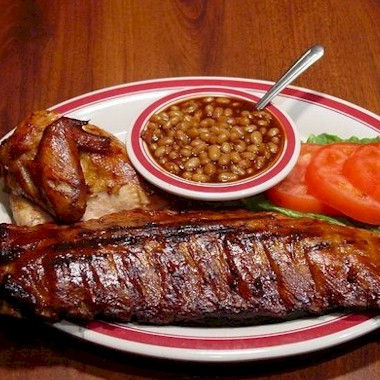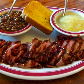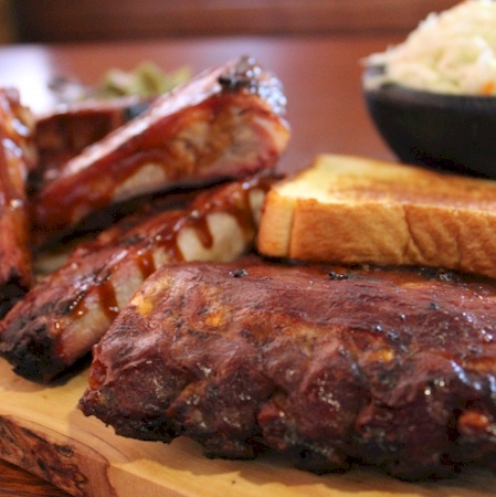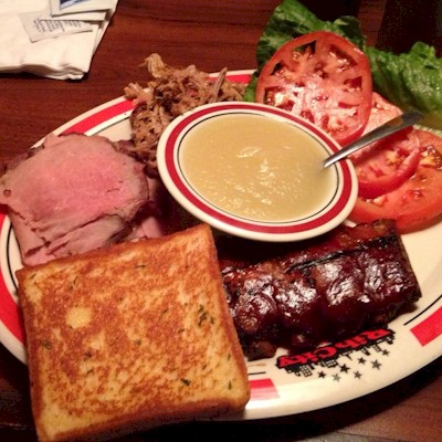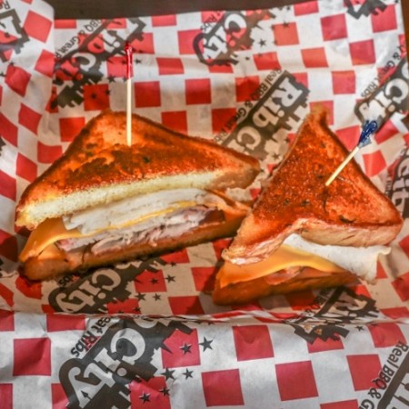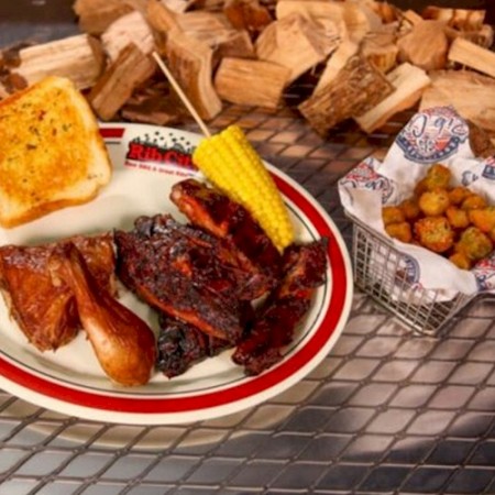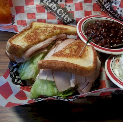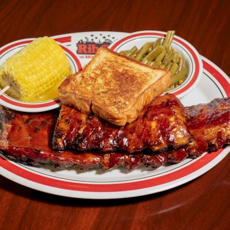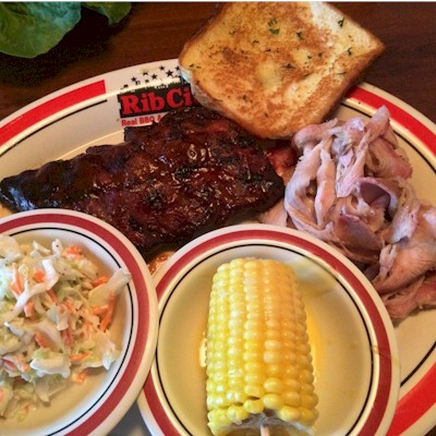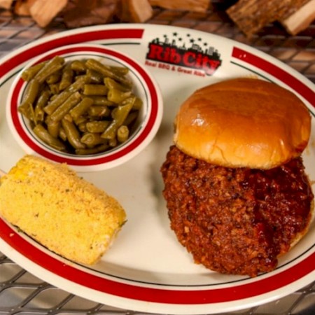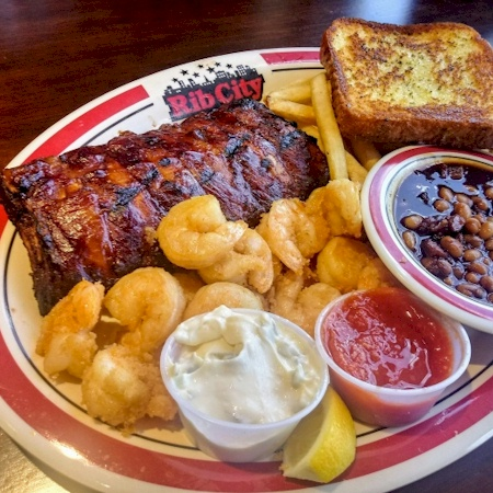 Rib City features delicious barbecue including both baby back and St. Louis-style ribs, BBQ chicken, sliced pork, BBQ beef, and smoked turkey, along with big BBQ sandwiches, and some delicious starters like their Three Cheese Fries, Buffalo Shrimp, and Crunchy Onion Rings.