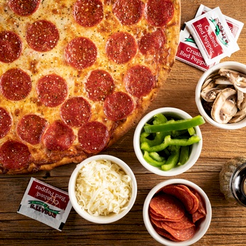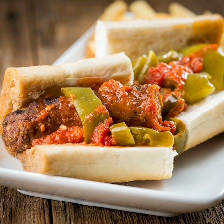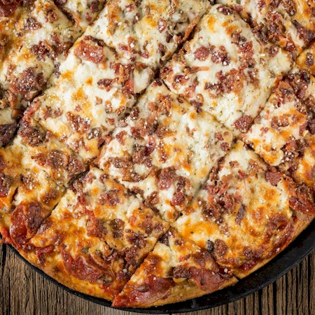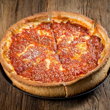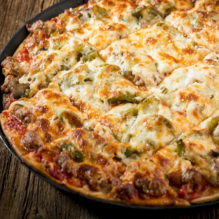 Chicago-style pizzeria with a menu that includes thin-cut and deep-dish pizzas, Italian beef and sausage sandwiches, calzones, pasta, wings, appetizers, salads and more.
