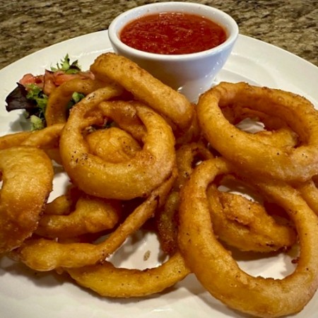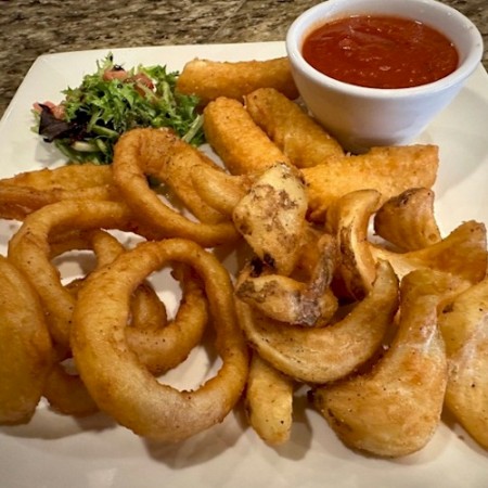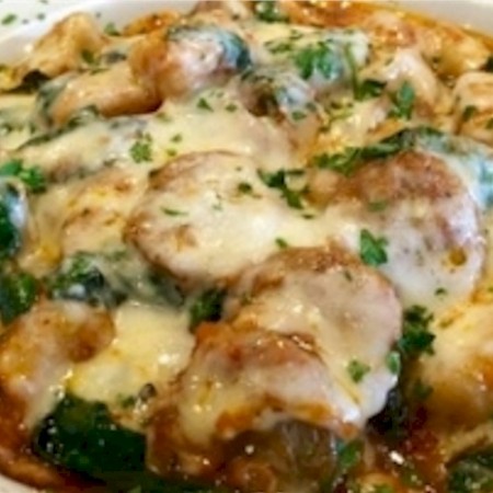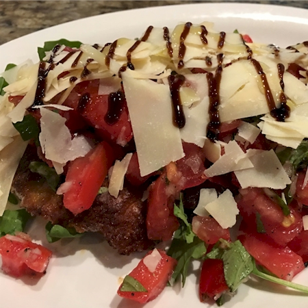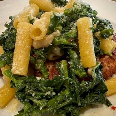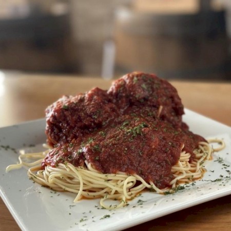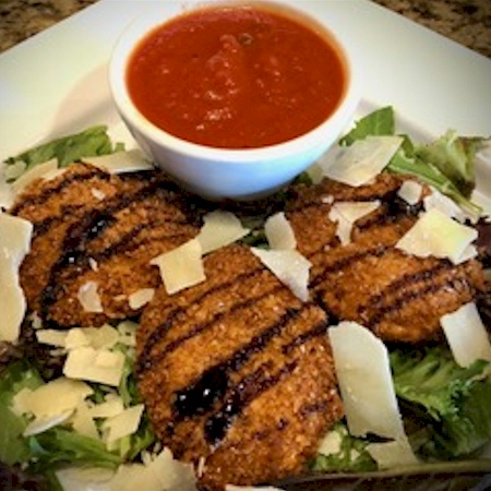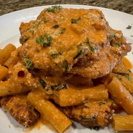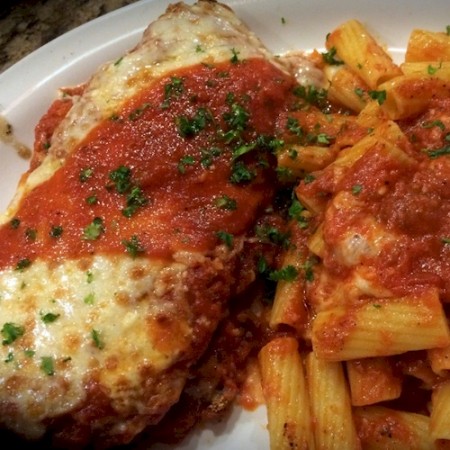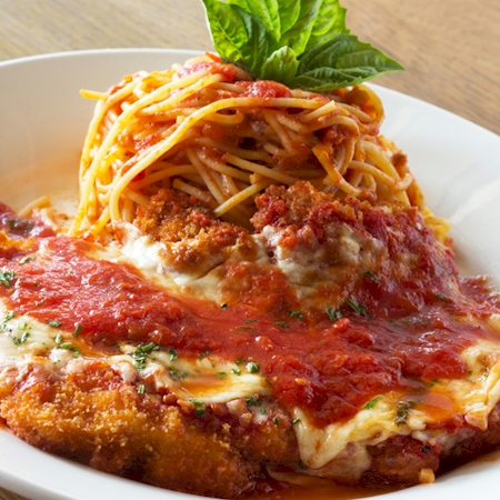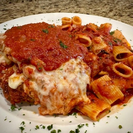 Egg-battered & dipped in seasoned bread crumbs. Lightly fried, topped with fresh mozzarella cheese & homemade marinara sauce. Baked to perfection & served with a pasta of your choice in a marinara sauce, or substitute vegetables for an additional charge.