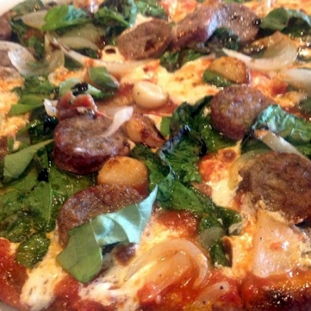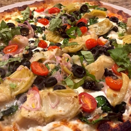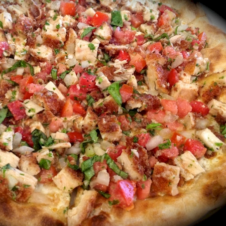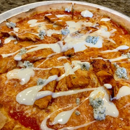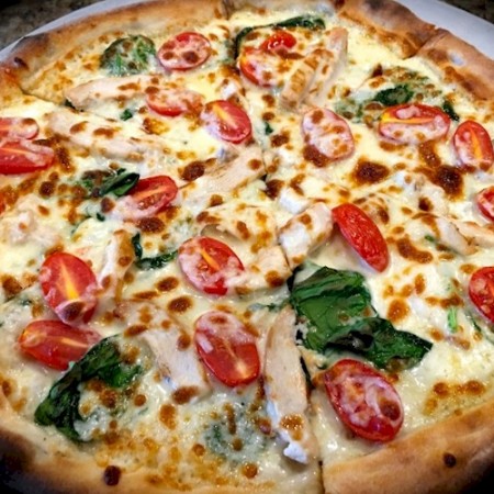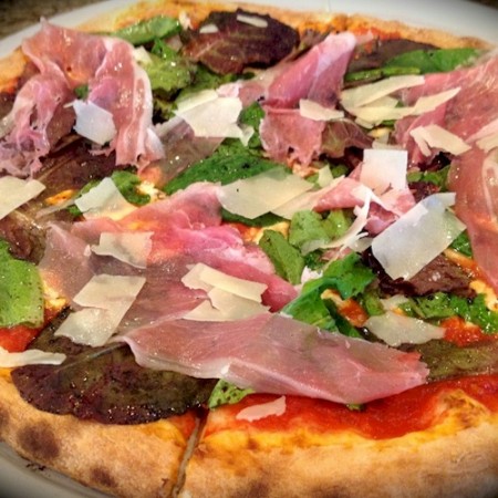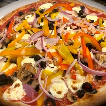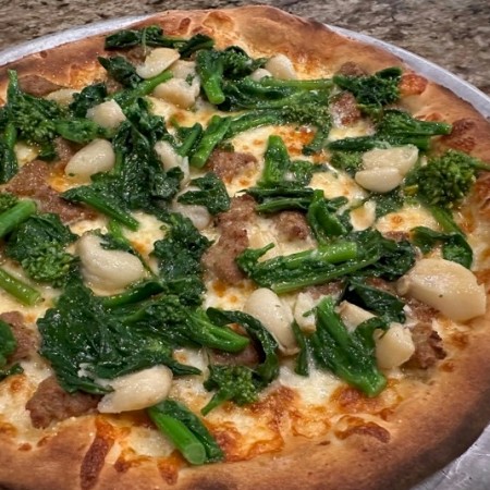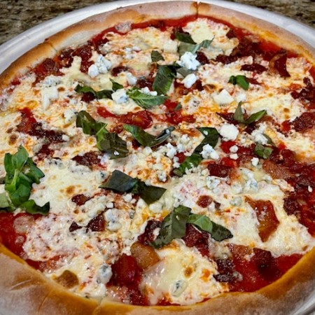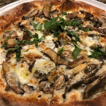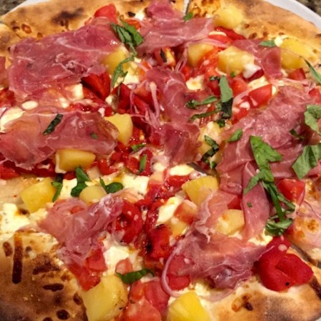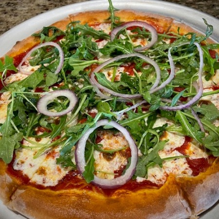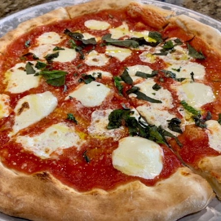 Napoletana style, thin crisp crust. Dough prepared daily with imported Napoli flour perfect for our wood fired brick oven. All red sauce pizzas are made with fresh mozzarella & crushed imported San Marzano tomatoes. We use an open-hearth, wood-fired brick oven like those in Naples, Italy. The very high very high temperature provides the perfect look, taste & aroma of a true Pizza Napoletana.