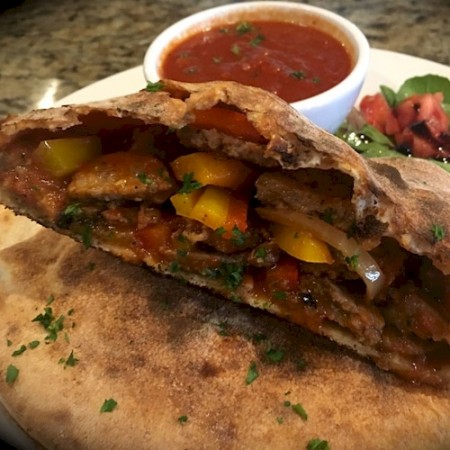 All of our calzones & sandwiches are brick oven baked. Our sandwiches are not heroes. They are HOT with rustic perfection.