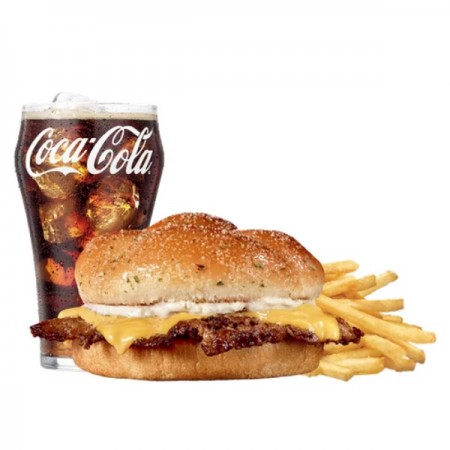 Made with 100% Beef, which includes steak, quick seared on our fiery-hot grill to seal in the flavor and create our unique crispy edges, served on a toasted bun.