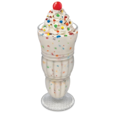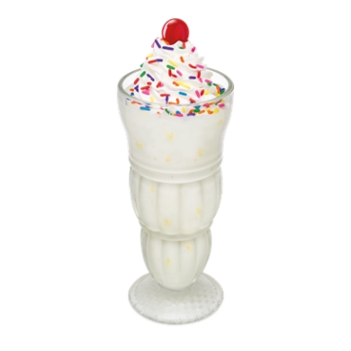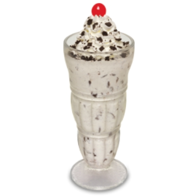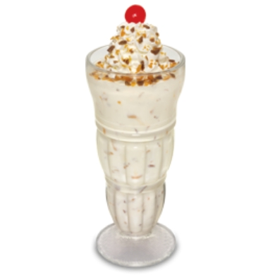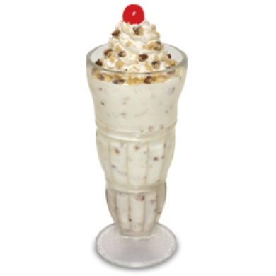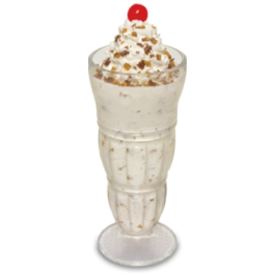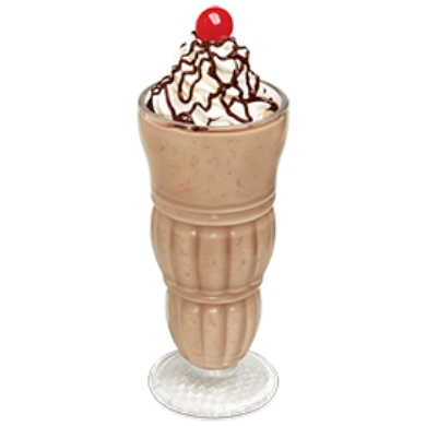 Irresistible and thick, made with real ice cream, topped with whipped cream and a cherry.