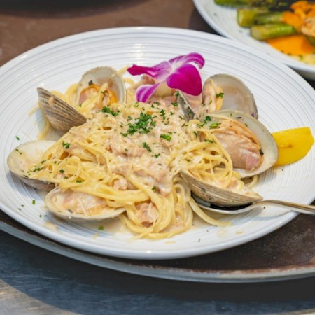 Swan river serves seafood fresh from their adjacent seafood market, including their famous crab cakes, a large variety of fish, lobster, clams and chowders, along with a few land entrees featuring pasta, chicken and beef.